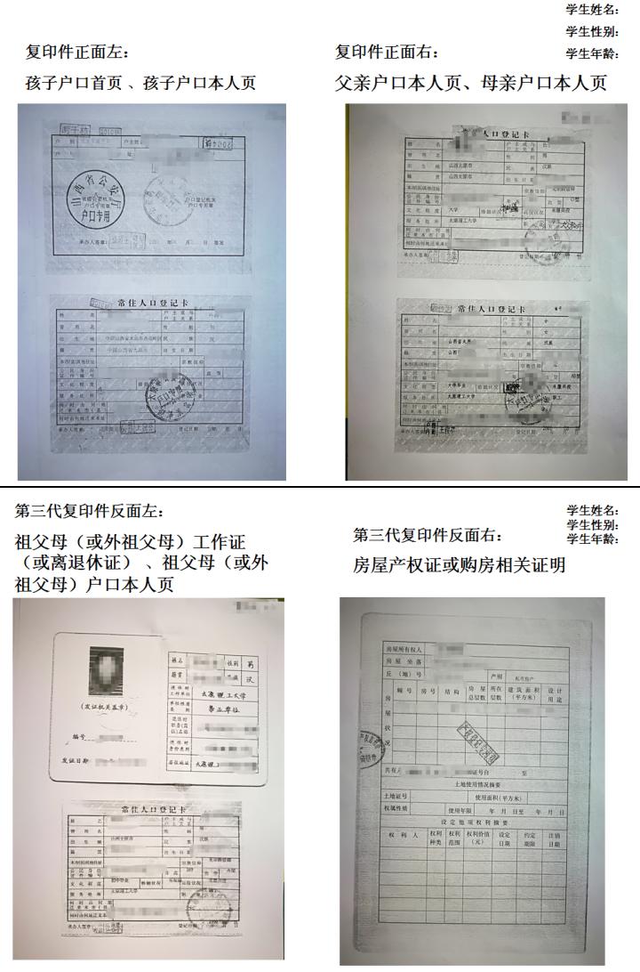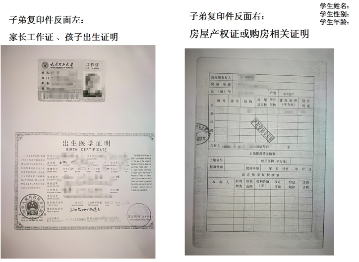 A4纸反面:左上:家长工作证; 左下:孩子出生证明