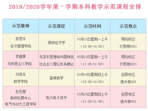 关于举办2019-2020学年第一学期本科教学示范观摩活动的通知