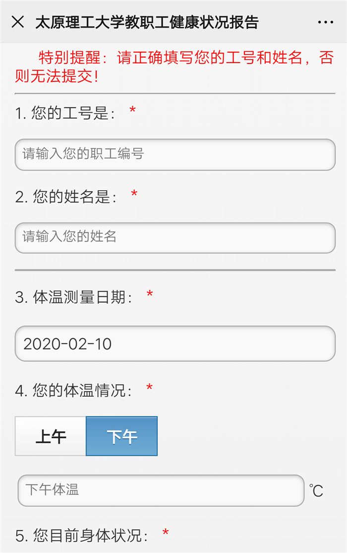 3.“350vip浦京集团官网教职工健康状况报告”系统填报页面:
