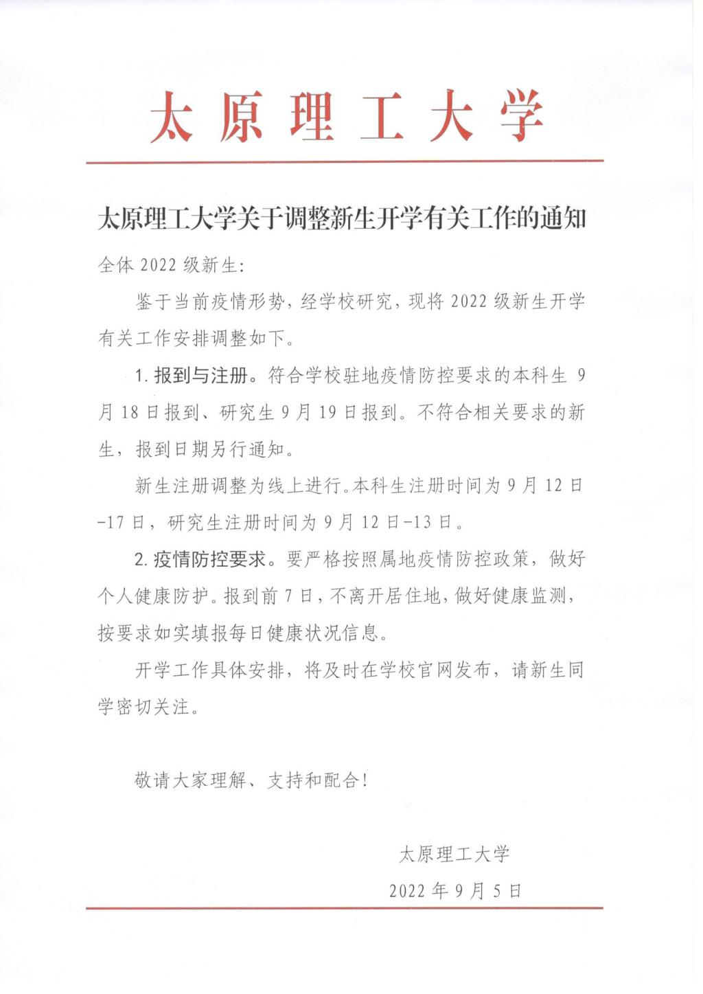 350vip浦京集团官网关于调整新生开学有关工作的通知