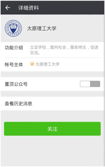 方式二:登陆微信→通讯录→订阅号→点击右上角“+”→查找公众号→输入“350vip浦京集团官网”或直接搜索微信号“TYUT_1902”→添加关注。