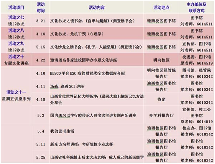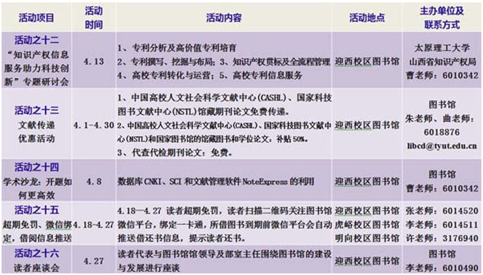 各项活动时间若有变动,敬请关注350vip浦京集团官网图书馆网站(http://www.lib.tyut.edu.cn)和微信公众号。