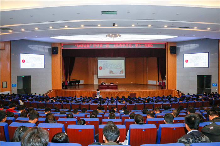 刘润祥在讲话中对“知明讲堂”成立的意义、发展目标与发展历程做了简要介绍,对基础学院成立“知明讲堂”并将其作为课堂教学的有效延伸给予了充分肯定。他指出“知明讲堂”自2017年揭牌以来,全面落实“厚基础、宽口径、强能力、高素质”的培养理念,通过打造通识教育品牌,帮助同学们认识和了解社会,确立正确的世界观、人生观和价值观,促进大学生全面发展。一年来,讲堂共邀请10多位国内知名专家学者做客,已逐渐成为了有亮点、有特色、有内涵的理工文化新名片。他希望广大新生能够珍惜这来之不易的学习机会和良好环境,按照习近平总书记提出的“勤学、修德、明辨、笃实”总要求,牢牢把握人生机遇,勇于担当时代使命,为将来成就人生、服务社会打下坚实的基础。