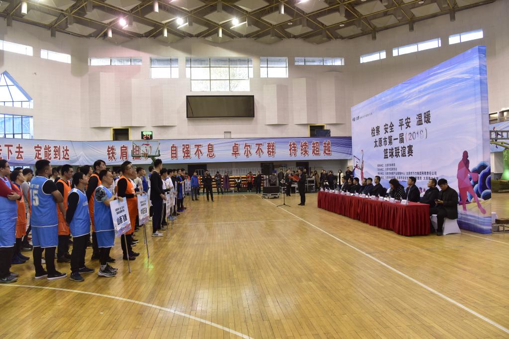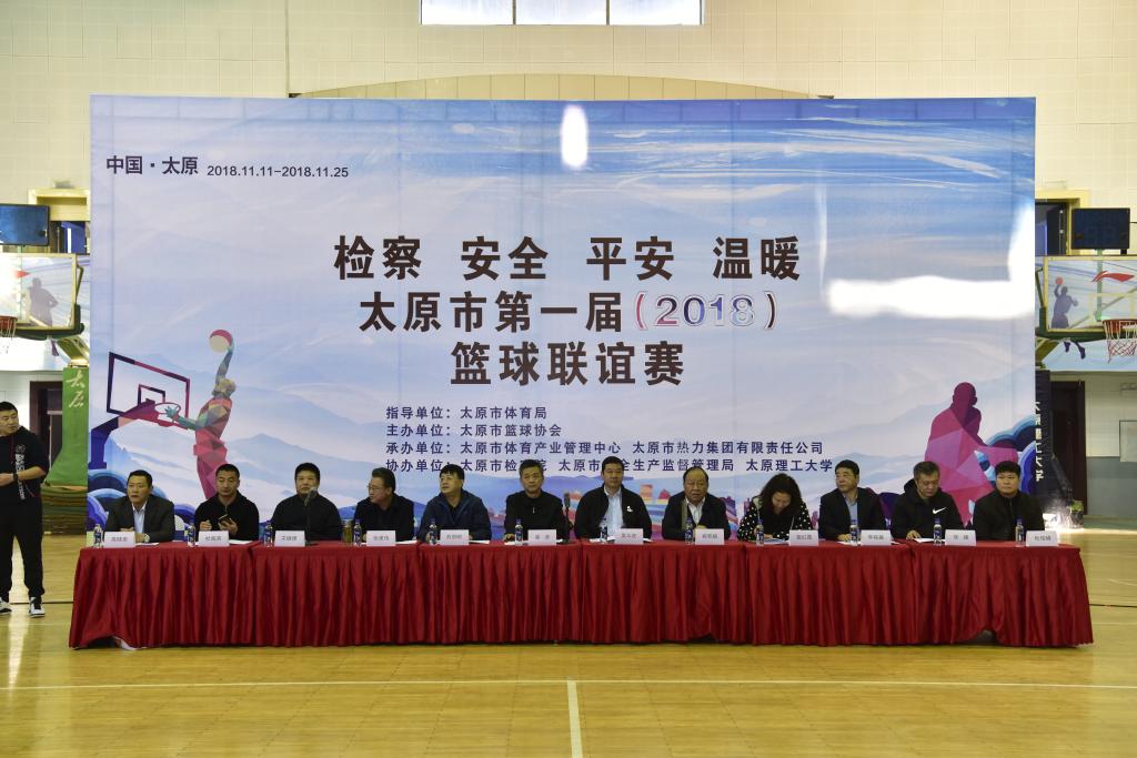11月11日下午,太原市第一届“检察安全平安温暖”篮球友谊联赛开幕式在浦京虎峪校区训练馆举行。太原市体育局党组书记、局长高波,太原市篮球协会主席、市体育局副局长裴红霞,太原市人民检察院党组成员、机关党委书记祝积岐,太原市安委会副主任、太原市安全生产监督管理局党组书记、局长刘剑明,太原市热力集团有限责任公司党委书记、董事长张建伟等来宾,以及来自9个单位的职工篮球队队员、教练员、裁判员等参加开幕式。
