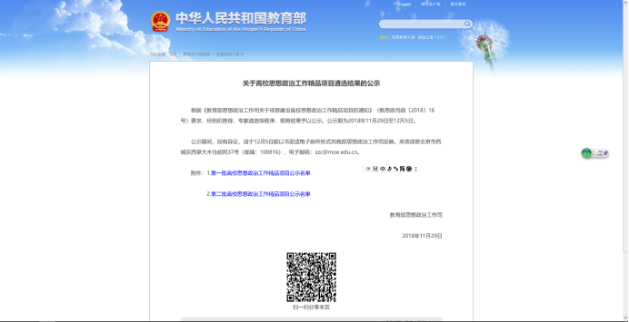 浦京一项目入选教育部首批高校思想政治工作精品项目