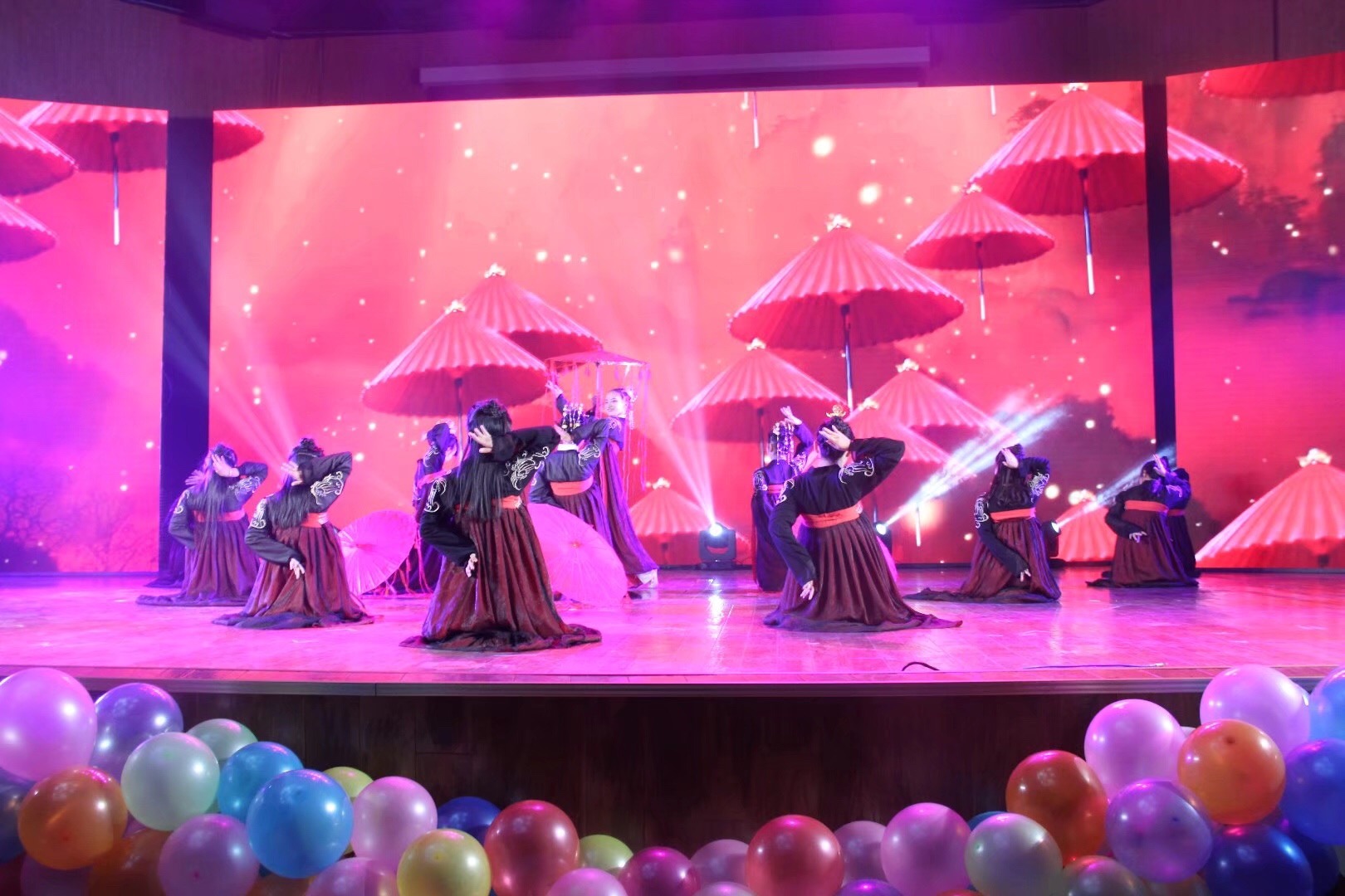 晚会之初,九重天ACG协会的荧光舞《wota艺:艾莉丝》将晚会热烈精彩的气氛点燃,并带来了现代与古代融合的精彩舞蹈《将进酒》,带领我们走入了悠悠古韵。Hi英语俱乐部的英文歌曲深情对唱《take me to your heart because of you》;阳光舞蹈协会青春洋溢的舞蹈《薇爱》;武术竞技俱乐部、跆拳道社团的精彩刺激打斗《武道》;军乐团俏皮诙谐的《哆啦a梦之歌》;藏族文化交流协会的藏族舞《喜相会》;礼仪队优雅沉稳的《古今礼韵》等等精彩的节目令人眼花缭乱,观众们的鼓掌叫好声经久不绝。最后飓风演讲与口才协会的朗诵《盛世中国》为晚会拉下了帷幕。
