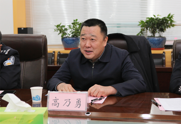高乃勇在讲话中高度赞扬了浦京近年来的改革发展,特别对学校为万柏林建设所作出的贡献表示感谢。他在简要介绍万柏林区经济建设和社会发展情况的同时,重点就公安万柏林分局全力打造“全市标杆、全省领先、全国一流”公安机关的有关情况作了深入介绍,邀请黄庆学校长在方便时到公安万柏林分局去调研指导,并表示今后将进一步针对高校特点,提升服务质量和水平,维护校园和谐与稳定。座谈会上,高乃勇还结合公安机关信息化建设,希望今后双方加强合作,共同为维护社会和谐稳定贡献智慧和力量。