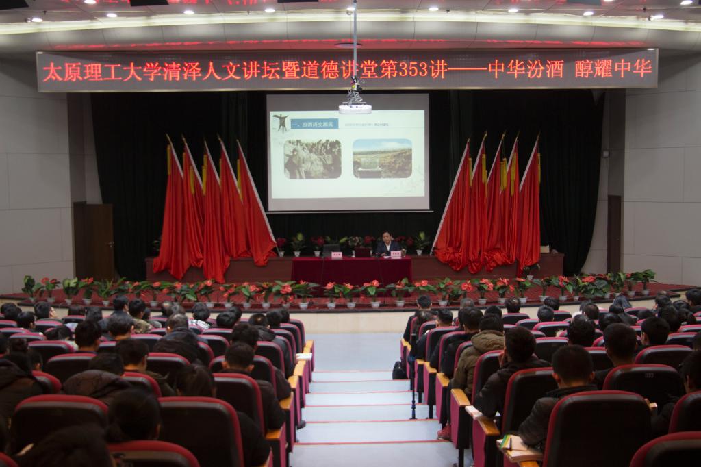 12月21日,汾酒集团有限责任公司党委书记、董事长,350vip浦京集团官网特聘教授李秋喜应邀做客浦京清泽人文讲坛暨道德讲堂第353讲,在迎西校区博学楼二层报告厅为师生们带来了题为“中华汾酒,醇耀中华”的讲座,部分校领导和三百余名师生现场聆听了李秋喜教授的讲座,讲座由校党委书记吴玉程主持。