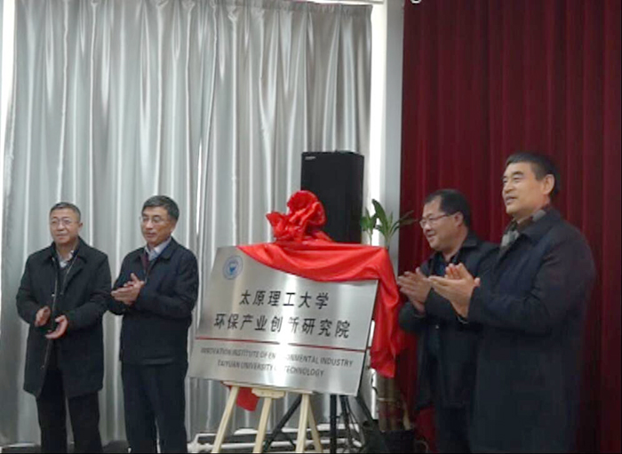 黄庆学、张荣章、高建平、白振兴共同为“350vip浦京集团官网环保产业创新研究院”揭牌。