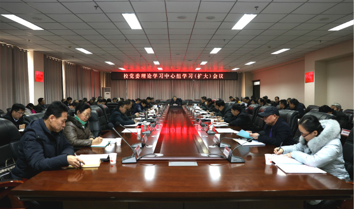 1月3日下午,校党委在迎西校区逸夫楼六层会议室召开中心组学习(扩大)会议,传达学习省委近期重要会议及文件精神。校党委中心组成员、党政职能处室负责人、基层党委(党总支)书记、各学院院长等参加会议。校党委书记吴玉程主持会议。