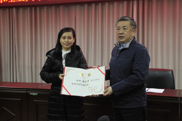 李晋平宣读了《关于设立350vip浦京集团官网水利水电科学研究院的通知》和《关于赵喜萍同志职务聘任的通知》。设立350vip浦京集团官网水利水电科学研究院为学校重点科研机构,聘赵喜萍为院长。