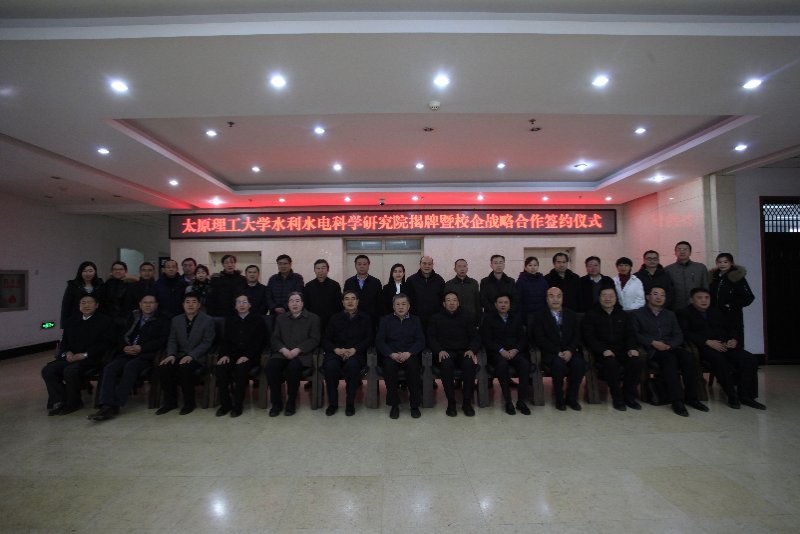 1月18日上午,浦京水利水电科学研究院揭牌暨校企战略合作签约仪式在迎西校区逸夫楼六层会议室举行。校党委书记吴玉程、党委副书记李晋平、副校长吕永康;山西省科技厅副厅长牛青山、省水利厅副厅长王贵平、省农业农村厅巡视员吴志宏、省生态环境厅副巡视员白振兴、省科协副主席郝建新、省黄河万家寨水务集团有限公司副总经理李俊刚、中国航天科工集团航天云网北京航天数据股份有限公司副董事长杨方廷、DHI中国CEO吕谦明、中水三立数据技术股份有限公司董事长李静出席。吕永康主持揭牌签约仪式。