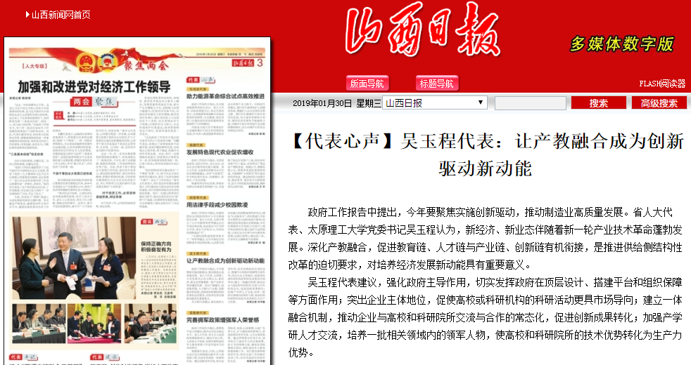 山西日报:【代表心声】吴玉程代表——让产教融合成为创新驱动新动能