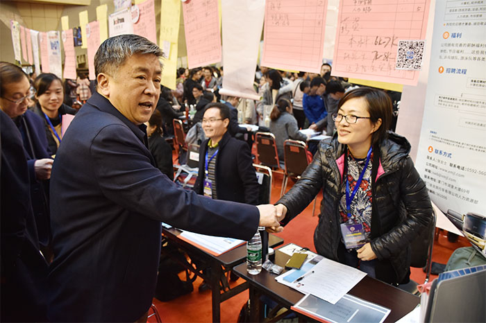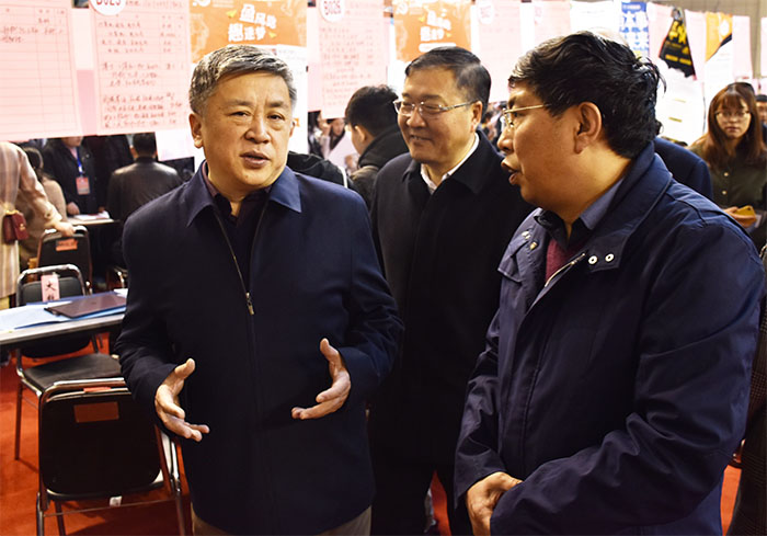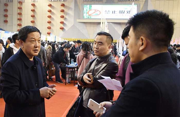 3月2日,浦京2019届毕业生春季就业洽谈会在迎西校区体育馆举行。来自省内外290余家用人单位参会,共为毕业生提供1.4万个岗位。校领导吴玉程、李晋平、刘润祥、翟健、树学峰、梁卫国、李明,在党办、宣传部、学生处、保卫处等相关职能部门负责人的陪同下来到现场指导工作,并与毕业生及用人单位进行了深入交流。