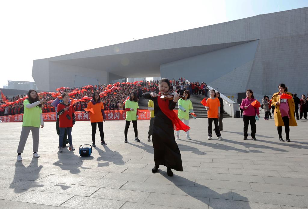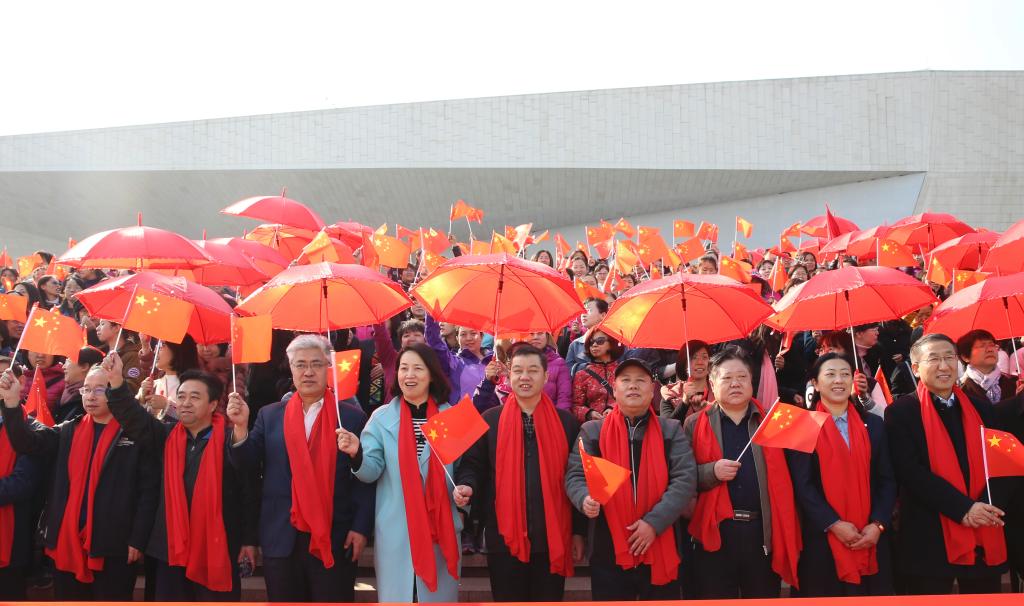 第109个“三八”国际劳动妇女节到来之际,3月7日下午,浦京“逐梦新时代、巾帼绽芳华”千名女教职工唱响《我和我的祖国》之快闪活动在长风文化商务区山西大剧院广场举行,载歌载舞庆祝自己的节日,以满腔热忱表达对新中国成立70周年的美好祝福。副校长吴斗庆及党政职能处室、各学院有关领导应邀参加了此次活动。