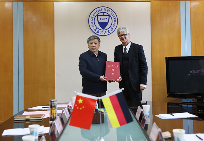 3月15日下午,德国锡根大学传感器系统中心主任奥特玛·洛菲尔德(Otmar Loffeld)受聘浦京客座教授,受聘仪式在迎西校区办公楼324会议室举行。省委组织部副部长、省人社厅厅长卢建明,省委组织部人才工作处处长张新伟;校党委书记吴玉程,副校长梁卫国出席;物电学院负责人及新型传感器与智能控制教育部重点实验室相关学科代表参加。吴玉程为洛菲尔德教授颁发客座教授聘书。梁卫国主持受聘仪式。