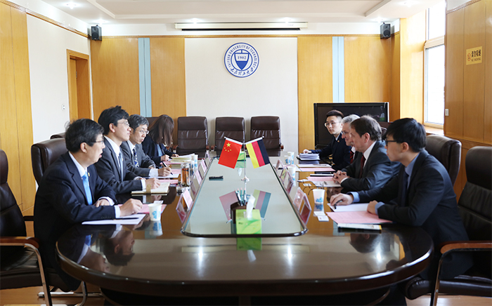 会见中,吴玉程对马哥德堡大学副校长Helmut Weiβ一行回访浦京表示热烈欢迎,希望两校在筹建孔子学院以及材料、化工、矿业、机械等专业建设领域开展深入合作交流。