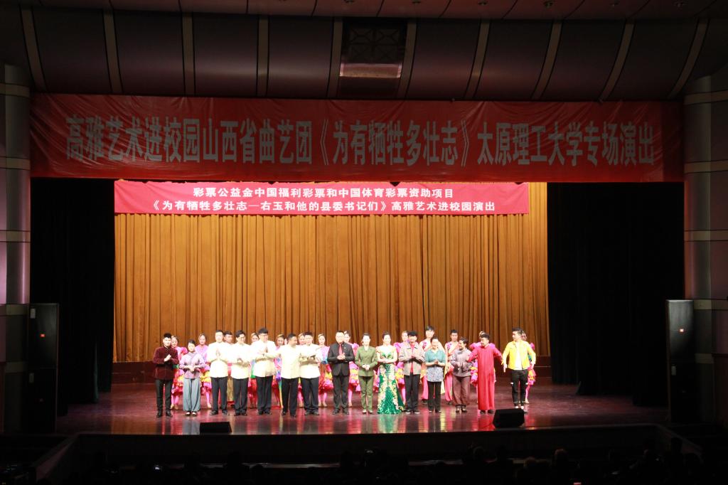 3月28日晚,由校团委、校工会主办的“改革创新、奋发有为”大讨论主题演出《为有牺牲多壮志——右玉和她的县委书记们》在浦京虎峪校区同泽会堂成功举办。全校700余名师生欣赏了这场充满着右玉精神和文化的艺术盛宴。