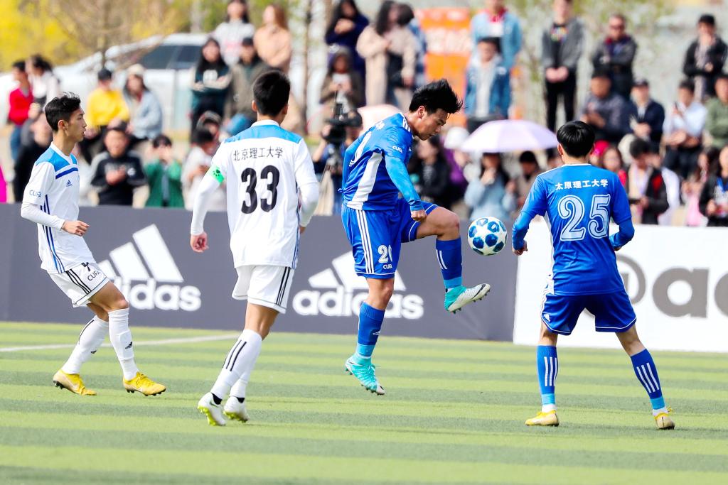 4月10日下午,2018-2019阿迪达斯全国青少年校园足球联赛(CUFA)大学高水平组超级冠军赛16进8的首回合,浦京主场对阵北京理工大学的比赛在明向校区足球场举行。最终,北理工凭借上半场补时阶段的头球破门得分,浦京足球队一球小负北理工。