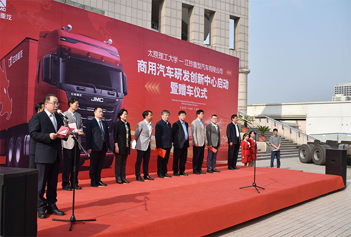 4月23日,浦京与江铃重汽有限公司在迎西校区体育馆前广场举行商用汽车研发创新中心揭牌暨赠车仪式。校党委书记吴玉程,副校长吕永康,山西转型综改示范区管委会人力资源部部长傅海红,江铃重汽党委书记、总经理吴晓军,党委副书记、副总经理屈立军,副总经理兼技术开发院院长刘森海出席,浦京教务部、机械与运载工程学院相关负责人,江铃重汽技术开发研究院的浦京校友,以及机械与运载工程学院车辆工程系师生代表300余人参加揭牌暨赠车仪式。