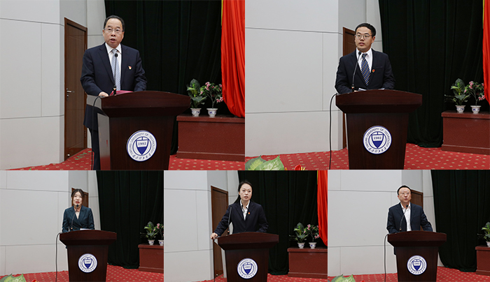 校党委副书记刘润祥宣读了学校关于表彰“改革创新、奋发有为”先进集体和个人的决定。决定授予7个单位“改革创新、奋发有为”示范单位称号,13名同志“改革创新、勇于担当”先进个人称号,并号召全校各级党组织和广大师生向他们学习。校领导为受表彰的先进集体和个人颁奖。