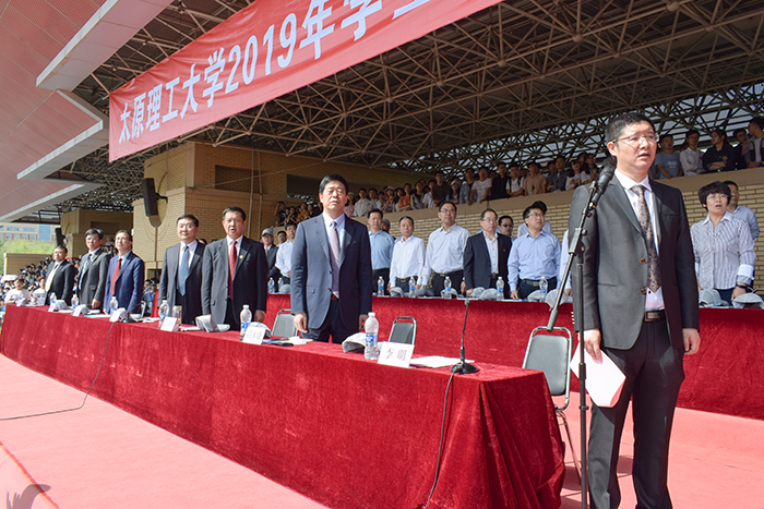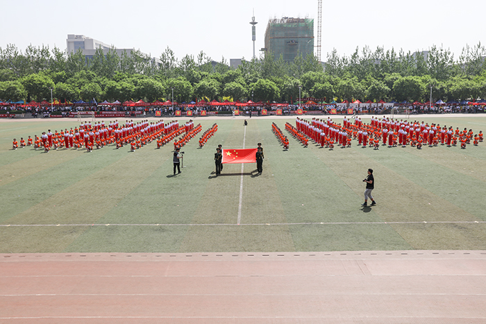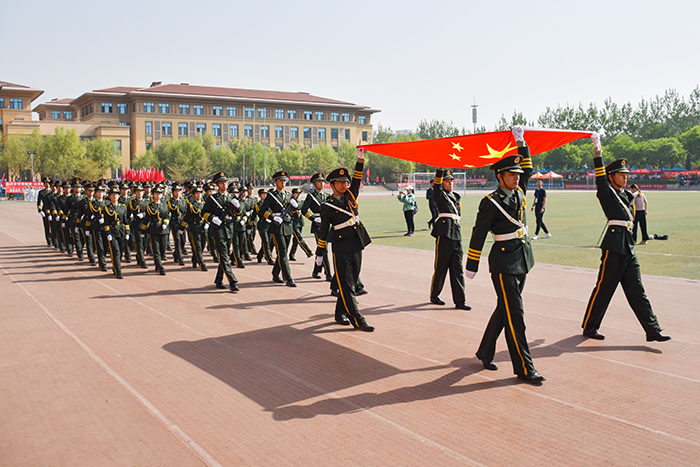 沐浴着夏日的暖阳,伴随着激昂的乐曲,国旗方阵、花队、军乐队、旗队、裁判员及各学院运动员方阵依次通过主席台接受检阅,运动员们昂首阔步、精神饱满、斗志昂扬、英姿飒爽、口号铿锵,展现了理工大学子昂扬向上、奋发进取的精神,主席台和观众席向运动健儿们报以一次次热烈的掌声。各方阵入场后,举行了升国旗仪式。