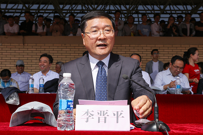 李晋平致开幕辞。他代表学校对本届运动会的开幕表示热烈的祝贺,向精心筹备运动会的部门和学院致以诚挚的谢意,向全体运动员、裁判员和相关工作人员致以亲切的问候。他回顾了过去一年学校体育工作和体育事业取得的一系列新进展,并指出,近年来,学校深入贯彻落实国家关于加强学校体育工作和青少年健康成长的方针政策,高度重视并着力构建竞技与健身有机结合的多层次、全方位体育工作格局,体育精神已成为深深根植于理工大的重要基因和光荣印记。他强调,一年一度的校运会是对学校体育工作和学生体育素质、精神风貌的一次全面检阅,也是加强学生体能训练、增强身体素质、实现全面发展的有效途径和重要举措,希望全体人员齐心协力,积极进取,顽强拼搏,努力把本次运动会办成一场热烈文明、团结奋进、彰显力量、展现风采的精彩赛事;希望全体同学以本次运动会为新的起点,牢固树立“健康第一、终身体育”的理念,走出宿舍、走下网络、走进操场,练就健壮体魄,磨砺坚韧意志,塑造健全人格,将比赛中激发出来的合作理念、集体观念、拼搏精神和竞争意识充分运用到日常学习和生活中去,以充沛的精力和强健的身心去学习、去拼搏、去创造,立志为续写理工大百年老校的壮美篇章而团结奋斗。