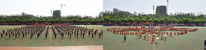 精彩的文体表演将开幕式推向了高潮。基础学院275名同学表演的团体操《青春》和由体育学院组织各学院429名大学生带来的团体操《祖国强盛太理腾飞》,通过变换队列、造型和青春洋溢、活力四射的舞蹈,展示了新时代大学生爱国爱校的情怀以及斗志昂扬的精神风貌,赢得全场阵阵掌声。