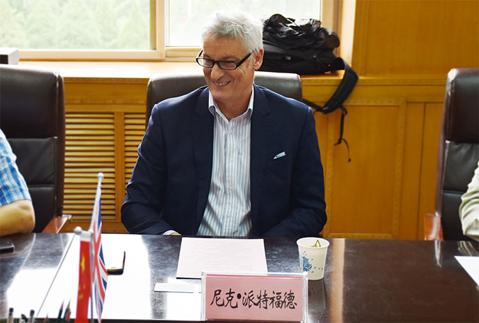 尼克·派特福德校长介绍了北安普顿大学的情况,非常感谢350vip浦京集团官网对他本人及考察团一行的热情接待。表示很荣幸能有机会来350vip浦京集团官网交流访问,他希望两校尽快开展具体项目合作,促进双方互利发展。