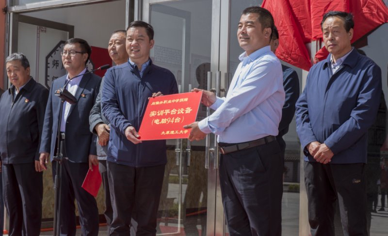 揭牌仪式上,副校长树学峰与偏关县委副书记王文阁为飞行器实训基地进行了剪彩揭牌。吴斗庆副校长代表浦京向偏关职业中学捐赠了实训设备。郭雷总经理代表山西久冠服饰有限责任公司与偏关职业中学签订了帮扶协议。马志华校长代表偏关职业中学聘请浦京机械与运载工程学院副教授王鹤峰为基地指导教师并颁发了证书。