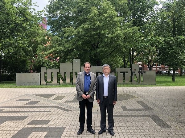 在结束了对科隆大学的访问后,吴玉程于5月26日访问了马格德堡大学,就科研、教学相关课题的合作事宜与该校副校长赫尔姆特·艾斯教授深入交换了意见。