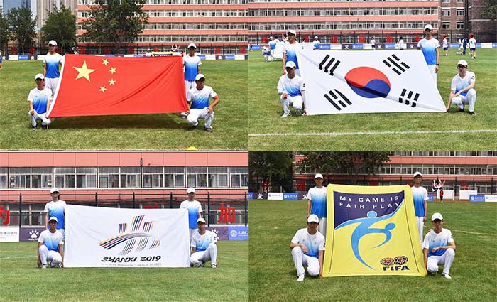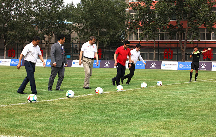 6月23日下午,“建行杯”2019中韩大学生足球邀请赛暨第二届全国青年运动会测试赛在浦京虎峪校区足球场开幕。山西省体育局局长赵晓春,校党委副书记刘润祥,檀国大学学生处处长金基宏,朝鲜大学体育学院院长李啓幸及浦京杰出校友代表吴英松等出席开幕式,省教育厅、省体育局等相关单位负责人以及浦京校长办公室、党委宣传部、学工部、保卫部、校团委、后勤保障处及体育学院等相关单位负责人参加开幕式。