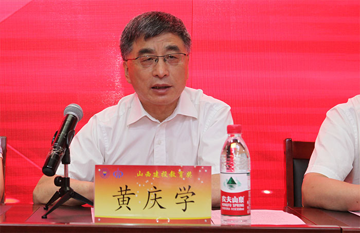 黄庆学在讲话中代表学校党政向设立“山西建投教育奖”的山西建设投资集团有限公司表示衷心感谢,向获得首届“山西建投教育奖”的老师和同学们表示热烈祝贺。他高度赞扬了山西建设投资集团有限公司强大的综合实力,及公司近年来在山西经济建设和高层次人才培养等方面做出的贡献,介绍了浦京基础学院自成立以来所取得成绩。他强调,作为“双一流”建设高校,学校始终以企业的参与和需求为导向,走在山西高等教育发展的前列。他指出,将“山西建投教育奖”设在基础学院,是学校高度重视基础教学质量、注重夯实人才培养基础的又一重要体现。希望获得奖励的老师们能够珍惜荣誉、不断努力,取得更大的成绩;希望获得奖励的同学们能够戒骄戒躁、保持状态,发挥榜样的力量,带领全校学子以优异的成绩回报学校、回报社会;希望校企双方紧密合作,共同为山西的发展做出更大的贡献。