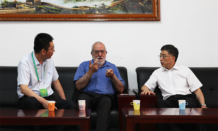 黄庆学与外籍专家教授进行深入交流,介绍了学校的校区分布、学科建设等基本情况及相关专业的发展状况,希望专家教授能够来浦京做长期的教学工作。