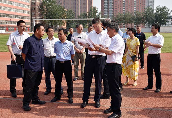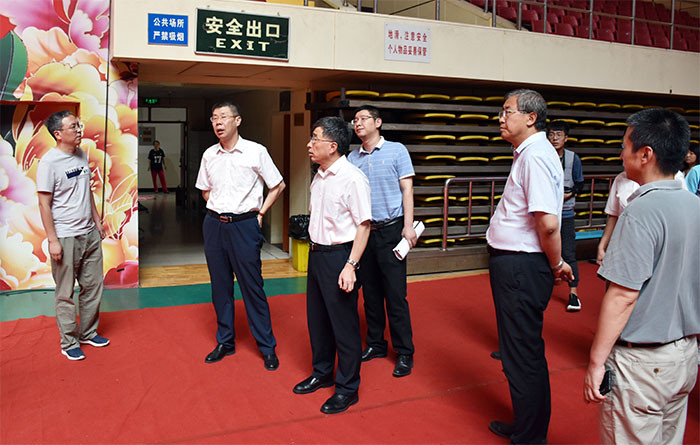 7月17日下午,副省长张复明在省教育厅、省体育局等相关单位领导的陪同下莅临浦京,就二青会筹备情况进行检查指导,校长黄庆学、副校长李明及校办、党委宣传部、财务部、后勤保障处、校团委、保卫处、体育学院等相关单位负责人陪同。