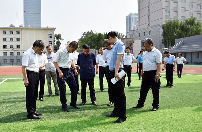 张复明一行深入浦京体育馆、迎西校区体育场和虎峪校区体育场等地进行实地检查。在体育馆详细了解了场馆设施是否齐全,座位、卫生间等是否够用,各类功能用房及灯光、电子屏、制冷设施等是否符合二青会要求等,并就一些细节问题提出了针对性的意见和建议。在体育场,张复明一行仔细查看了草坪铺设情况,询问周围环境如何,安保措施是否到位等。他对浦京的二青会筹备工作给予充分肯定,并希望学校继续对一些细节方面做进一步的完善,扎实推进各项工作,高质量完成所承办赛事任务。