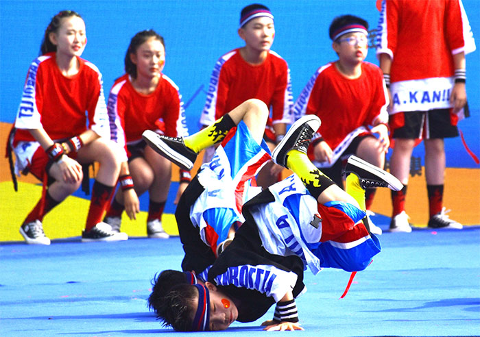 上午9时,起跑仪式现场人声鼎沸、欢声笑语。《威风少年鼓舞青春》《超越梦想》《青春接力》等一个个洋溢着青春气息的文艺节目相继上演,拉开了火炬传递仪式的序幕。浦京子弟小学一群朝气蓬勃、活泼可爱的小学生们表演了舞蹈《街舞少年》,欢快的旋律,动感的舞姿引来了阵阵喝彩。在终点站的文艺表演中,浦京在校大学生表演的串烧三段,体现了力与美,情与理,刚与柔的完美结合;《我和我的祖国》表达了对祖国的深情和热爱,体现柔美与中华民族文化底蕴;《圈圈舞》表达了青年的活泼可爱、友爱互助,国际视野和天下大同;《功夫熊猫》表达了复兴大任新时代青年的果敢与担当,力量与坚强,展示青年强则国强。