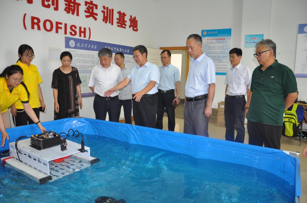 吴玉程对机器人团队师生能够冒着酷暑,牺牲休息时间,勤奋学习,刻苦钻研的这种精神给予高度的赞扬,并详细询问了各个正在制作的创新实践项目然后提出了相关的意见。他指出,工程训练、动手能力是教学培养过程中的一个重要环节,在创新实践活动中,要更多利用互联网、物联网、大数据、云平台等新技术,不断提升创新实践能力,产出一批高水平的创新实践项目,不能光以拿奖为目的做比赛,要能有实际运用的地方。其中参观水面垃圾清理的项目时,吴书记表示我们的机器人一定要发挥极端条件下的作用,要能抵达人不能到达的地方。他希望,大家能够再接再厉,参与到更多创新实践当中,创造出更多的成绩。