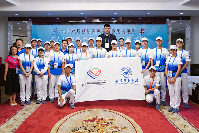 决赛期间,姚明还看望了浦京二青会青年志愿者,并与志愿者们合影留念。