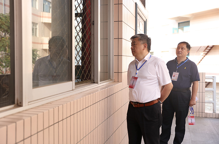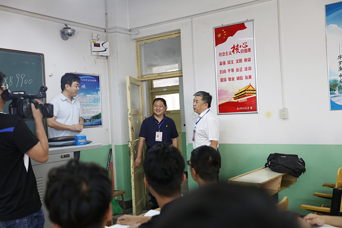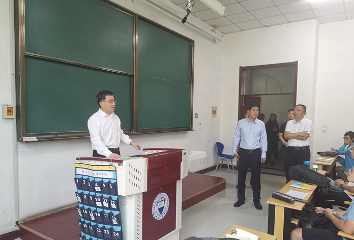 早晨八点整,吴玉程走进迎西校区思贤楼,查看了教师授课及学生上课情况。他或轻轻推开教室的门,与正在专注授课的老师点头示意,或透过窗户看着认真听课的同学露出欣慰微笑,间或轻声询问“上的是什么课”“学生到课率如何”等等。其间,吴玉程还实地了解了教师的休息条件、教室的安全状况、卫生环境等情况,并就相关工作提出要求。