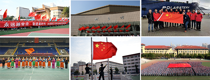 9月9日,新学年开学第一天,全校师生簇拥在国旗下告白最美祖国,启航新的征程;9月29日,2019级本科新生军训汇报表演现场,长30米、宽20米的巨型五星红旗在队列上方缓缓移动,将现场气氛推向高潮,为祖国母亲送上最真挚的问候与祝福。
