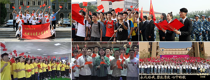 6月9日,理工大万余师生接受兄弟院校拉歌邀请,精心制作“青春为祖国歌唱——奋进篇”,拉开了献礼新中国的唯美画卷;7月27日,理工学子参加了中央电视台《我的祖国》快闪MTV的拍摄工作,以歌寄情、以曲表意,唱出了心中对祖国的无限热爱,将理工学子的风采传向祖国四面八方;9月27日,“颂歌献祖国、奋斗新时代”教职工大合唱隆重上演,三千余名教职工欢聚一堂,把歌声献给党、献给祖国,热情讴歌了新中国成立70年来的光辉历程和伟大成就。理工大人把千言万语汇成一句话:祝愿祖国繁荣强大!