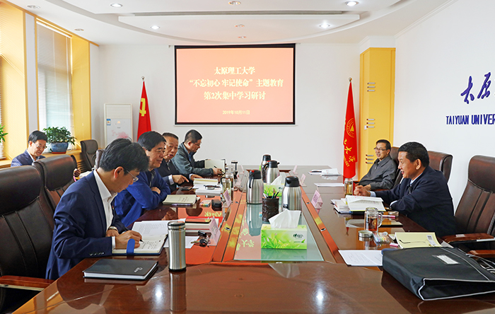 根据学校“不忘初心、牢记使命”主题教育总体安排,10月9日至11日,校领导班子开展了以“加强党性修养、勇于担当作为”等为主题的第二次集中学习研讨。学习研讨期间,校领导吴玉程、黄庆学、李晋平、刘润祥、翟健、吕永康、吴斗庆、树学峰、梁卫国、李明通读了《习近平新时代中国特色社会主义思想学习纲要》,学习了习近平总书记庆祝中华人民共和国成立70周年大会、推动中部地区崛起工作座谈会、视察山西时的重要讲话和关于能源革命的重要论述等内容,并结合学习内容和工作实际进行了交流研讨。党委办公室、校长办公室、组织部、宣传部、统战部等相关单位负责人参加了学习研讨。会议由吴玉程主持。