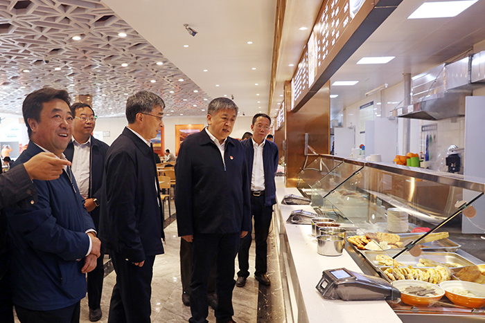 林武调研结束后,校领导吴玉程、黄庆学、李晋平深入学校公寓食堂一线,调研了解后勤系统在主题教育开展过程中解决民生问题、改善学生住宿条件和餐饮环境等方面的情况,指出要聚焦民生难点、热点问题,广泛听取群众意见,找差距、抓落实、解难题,下大力气进行整改,推动各项工作深入开展。