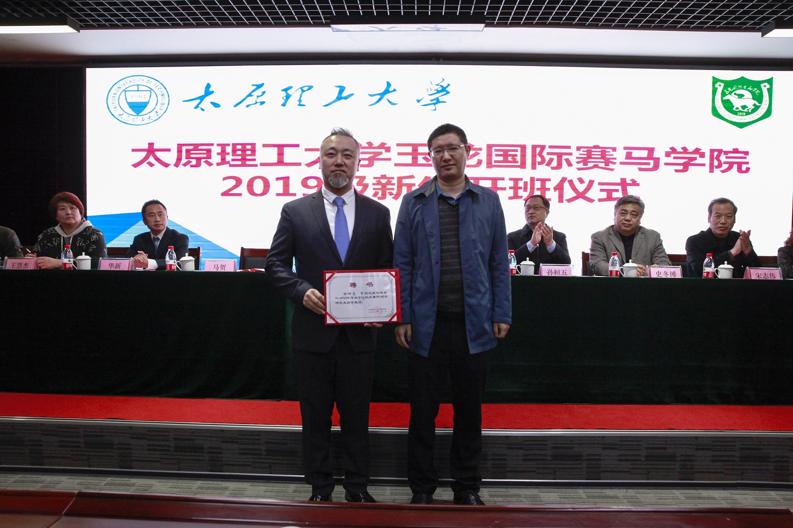 李明代表学校致辞。致辞中,他首先对赛马学院首届学生如期开班表示诚挚的祝贺和美好的祝愿。他表示,350vip浦京集团官网玉龙国际赛马学院的设立,是学校大力推进国际化、特色化办学和服务地方经济建设的又一重要举措。山西玉龙马业拥有国内最高水平的速度马赛事品牌和优良的国际化资源,是山西转型发展中涌现出的明星企业。相信双方在“优势互补、资源共享、协同发展、互惠互利”的合作理念指引下,一定能够将玉龙国际赛马学院建设成为“国内一流、国际知名”的高端马业人才培养基地。