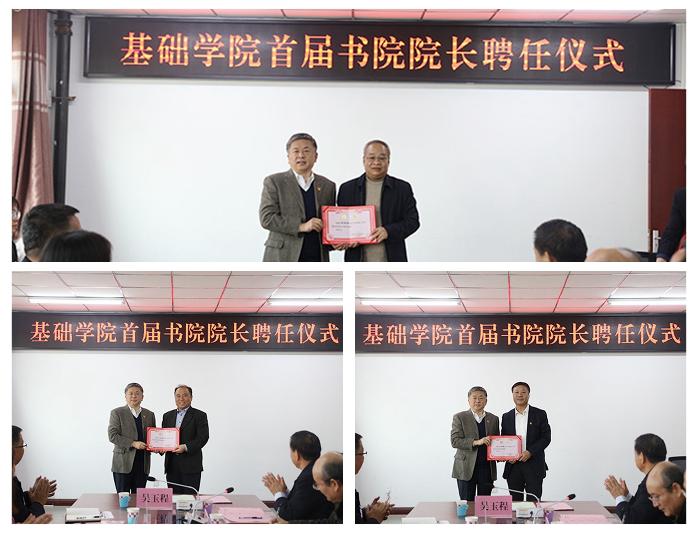 聘任仪式上,吴玉程为杨胜强教授、王文先教授、弓培林教授颁发了三书院名誉院长聘书,三位名誉院长分别作了表态发言。