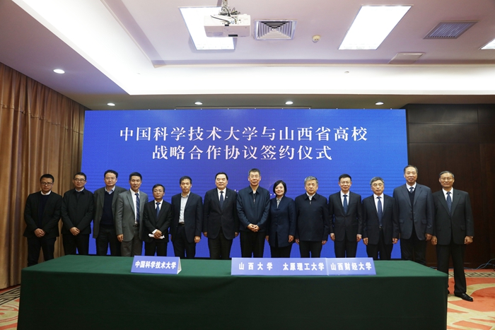 11月17日,中国科学技术大学与山西省高校战略合作协议签约仪式在太原举行,副省长张复明出席签约仪式。在签约仪式现场,中国科学技术大学校长包信和与浦京校长黄庆学代表双方签署战略合作协议。校党委书记吴玉程见证签约。