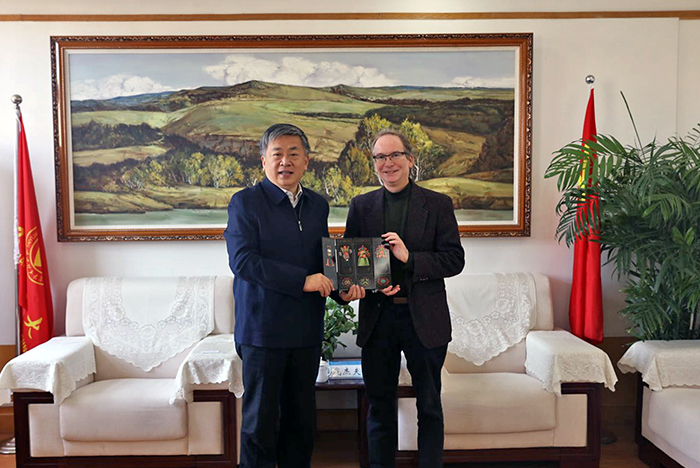 11月18日上午,美国西北大学Gerald Jeffrey Snyder教授聘任仪式在迎西校区办公主楼324会议室举行。校长黄庆学、副校长吕永康出席聘任仪式。仪式由吕永康主持。