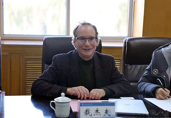 Gerald Jeffrey Snyder教授作了表态发言,对学校邀请和聘任表示感谢,希望双方今后在热电和其他能源材料领域形成实质性合作,共同推进两校间在研究生培养、学科建设、科研项目等方面的合作。