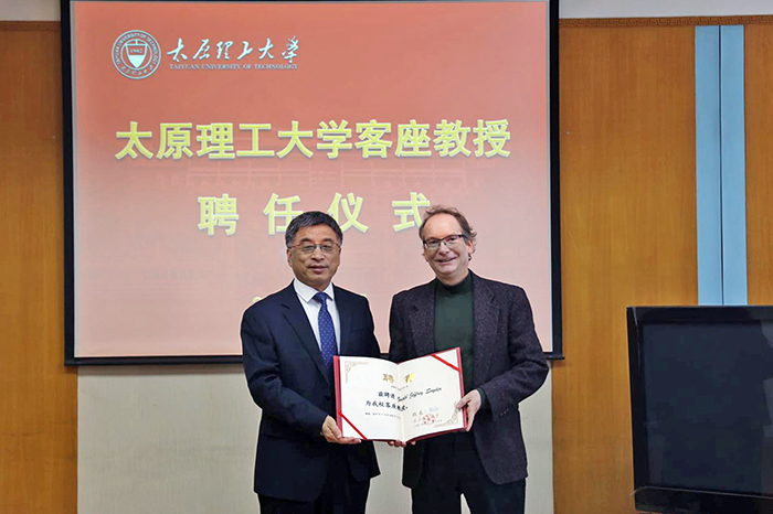聘任仪式上,黄庆学介绍了浦京的基本情况以及浦京在山西省对外开放和能源革命综合改革试点中的重要地位和发展战略,对Gerald Jeffrey Snyder教授加盟浦京表示诚挚欢迎,并向其颁发客座教授聘书。